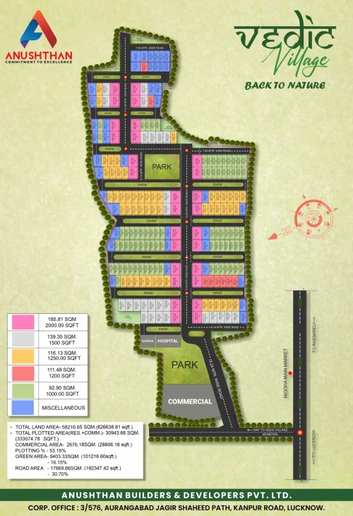 Vedic Village project is located at NIGOHA main market on Lucknow – Raibareli Highway which is the new hub of modern infrastructure development surrounded with scenic green belt in the backdrop. Vedic Village is a promise peace and tranquility which offers an attractive living opportunity with unique features, amenties and best connectivity with the City. This project is registered under UP RERA with RERA No. UPRERAPRJ450640/12/2024.